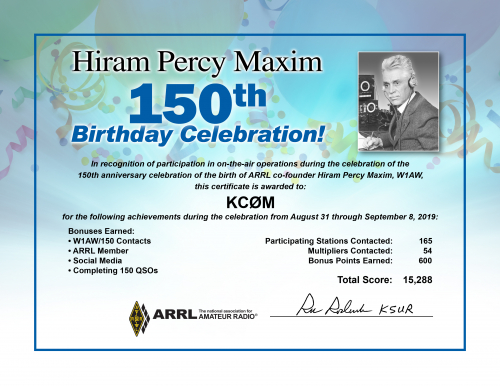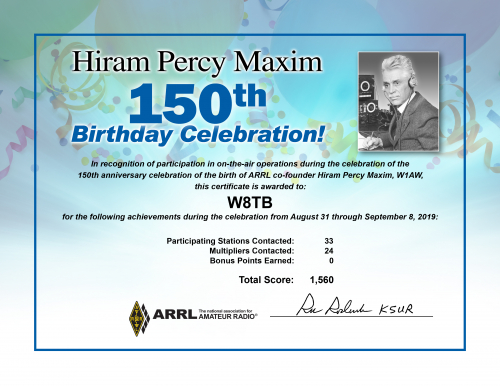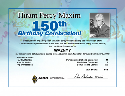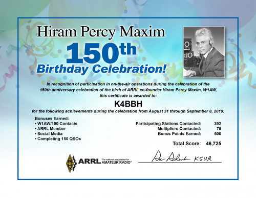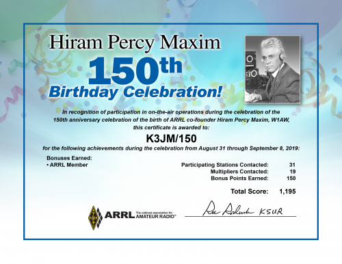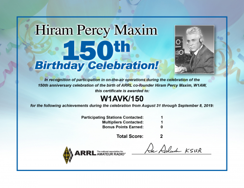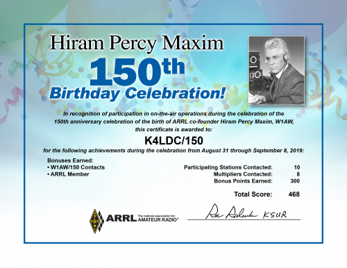 2019 Hiram Percy Maxim Birthday Celebration final results are listed below,
